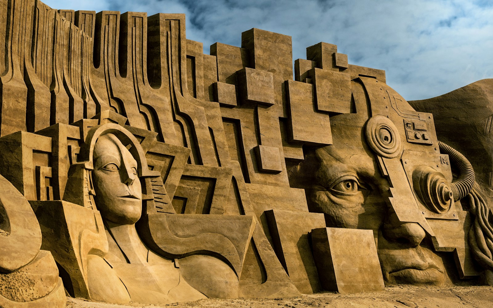 Die Beton-Skulptur ist modelliert. Die nächsten Schritte stehen an. Was genau wird am Tag festgelegt. Das Podest ist bereits im Hof des TAFFs installiert.