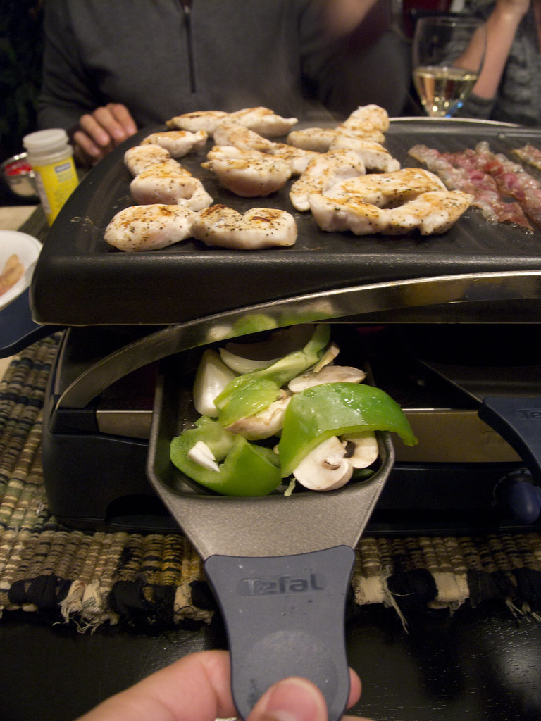 Raclette ist ein geselliges Gericht, bei dem geschmolzener Raclette-Käse über verschiedene Zutaten gegossen wird, die man dann direkt aus seinem Pfännchen unter einem Raclette-Grill isst.